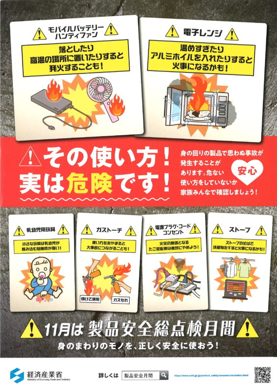 Yuwa Group11月は「製品安全総点検月間」です Posted on 2025年11月1日2025年11月4日 by 広報 担当 01 11月 11月は「製品安全総点検月間」です。皆様のまわりにもリコール対象製品や長期間の使用で異常が生じている製品はありませんか? YUWA GROUPは家庭用品を扱う企業として、この機会に製品安全に関する注意喚起やポスターの掲示 … 続きを読む →